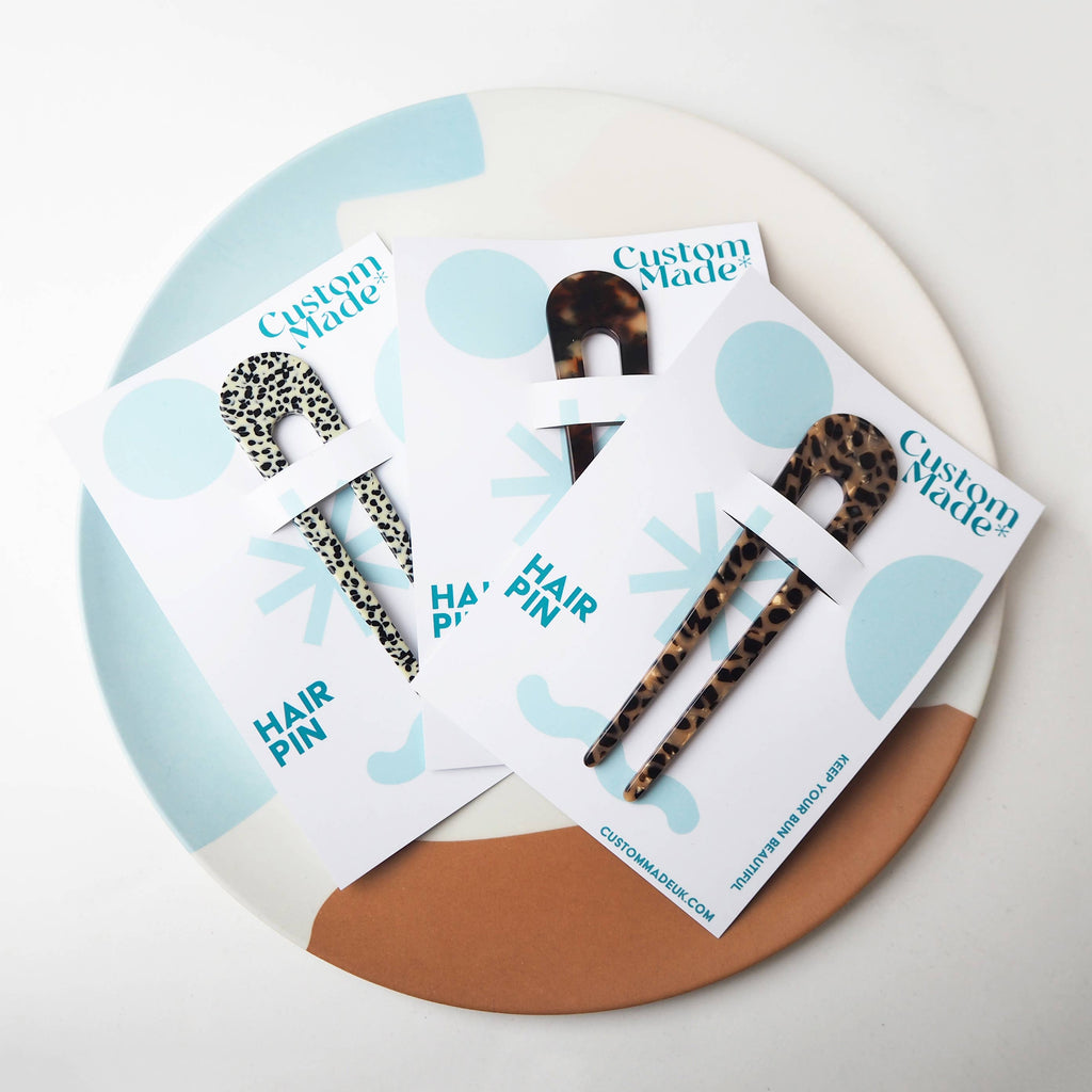 Pins will arrive in biodegradable, compostable & recyclable packaging. See display photo (note: hair pins are sold individually)