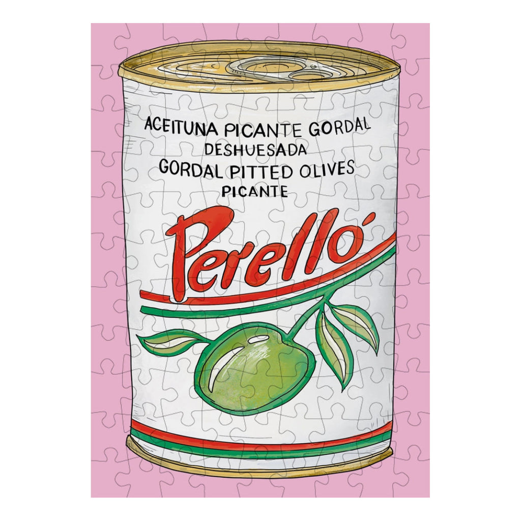 A 99-piece mini jigsaw puzzle featuring an illustrated tin of olives by Harriet Thomas-Bush. The perfect gift for foodies.   Suitable for ages 12+ Puzzle size: 10cm x 14cm Made in Turkey using sustainably sourced high quality FSC paper and 100% recycled board. Zero plastic used.