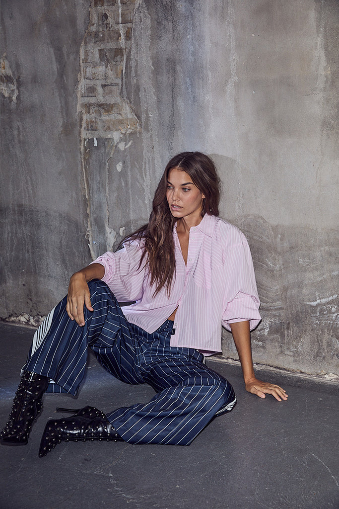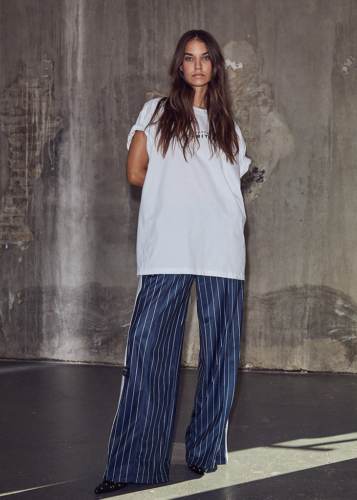 HAUTE LAMITIE Baggy Track Pants In Navy Pin Stripe