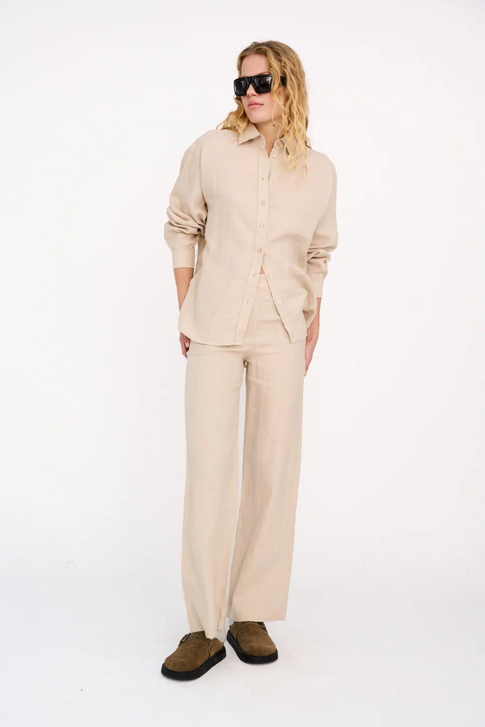 IVY Augusta 70s Linen Pant In Stone Beige