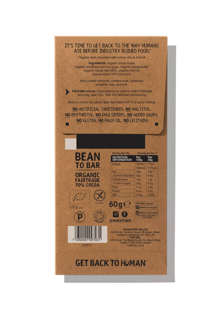 Organic Cocoa Mass, Organic Unrefined Coconut Sugar, Organic Cocoa Butter, Organic Cocoa Nibs (8%), Organic Mint Oil.