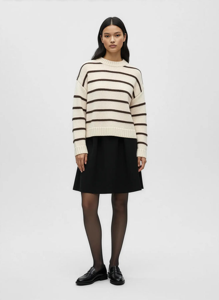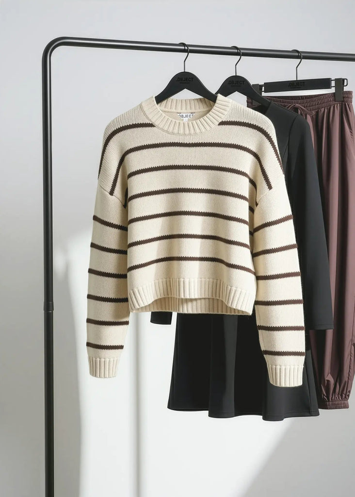 Throw it on with a pair of jeans for everyday ease or use it to dress down a glitzy skirt. Whatever your way, the knitted pullover is undoubtedly your year-round closet hero. Rib has a vertical striped pattern, is stretchy, and follows the contours of the body for a comfortable feel.