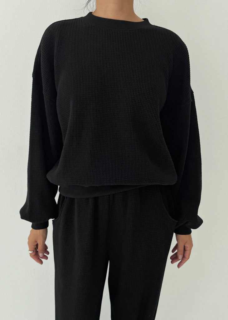 Le Bon Shoppe Waffle Core Sweatshirt In True Black