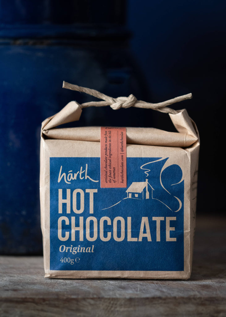 Our signature Swiss style hot chocolate is thick and smooth, made with organic unalkalaised cocoa powder. It is vegan and works well with a variety of milks or milk substitutes. All of our packaging is plastic free and biodegradable.