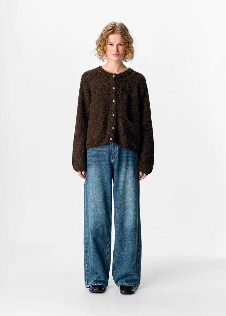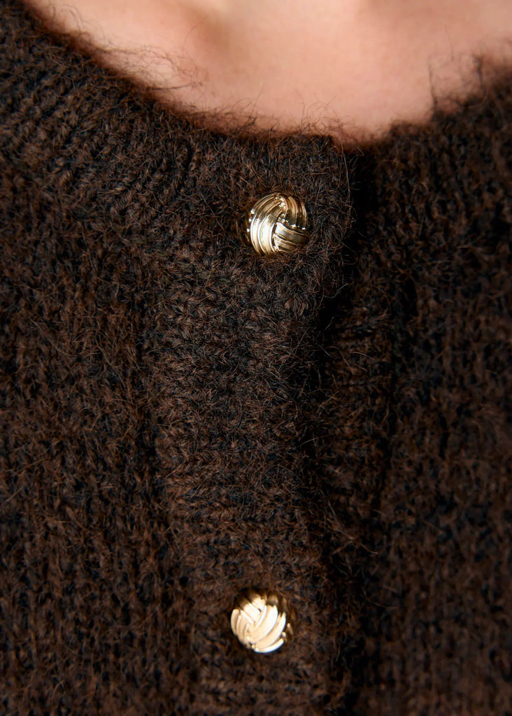 Object Button Up Knitted Cardigan in Seal Brown