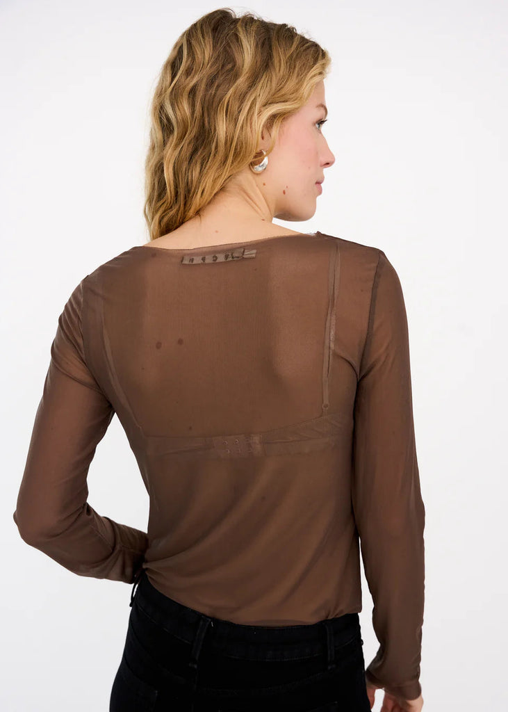 Sheer and simple – Toulle LS Top is a fitted mesh blouse that hugs the body with a super lightweight feel. Style it solo with a tonal bralette or layer it under a blazer or slip dress.