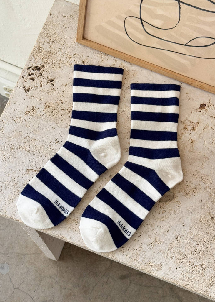 Le Bon Shoppe Wally Socks Wide Navy Stripe