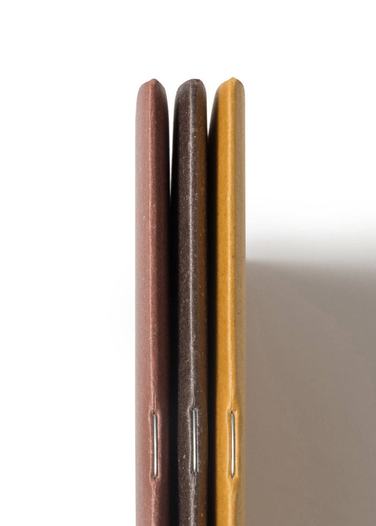 Pack of three sustainable notebooks made from {re}cycled coffee cup paper and {re}purposed beer waste. Printed in plain, lined and dotted. Ale (plain), Pils (lined), Bock (dotted). Cheers!